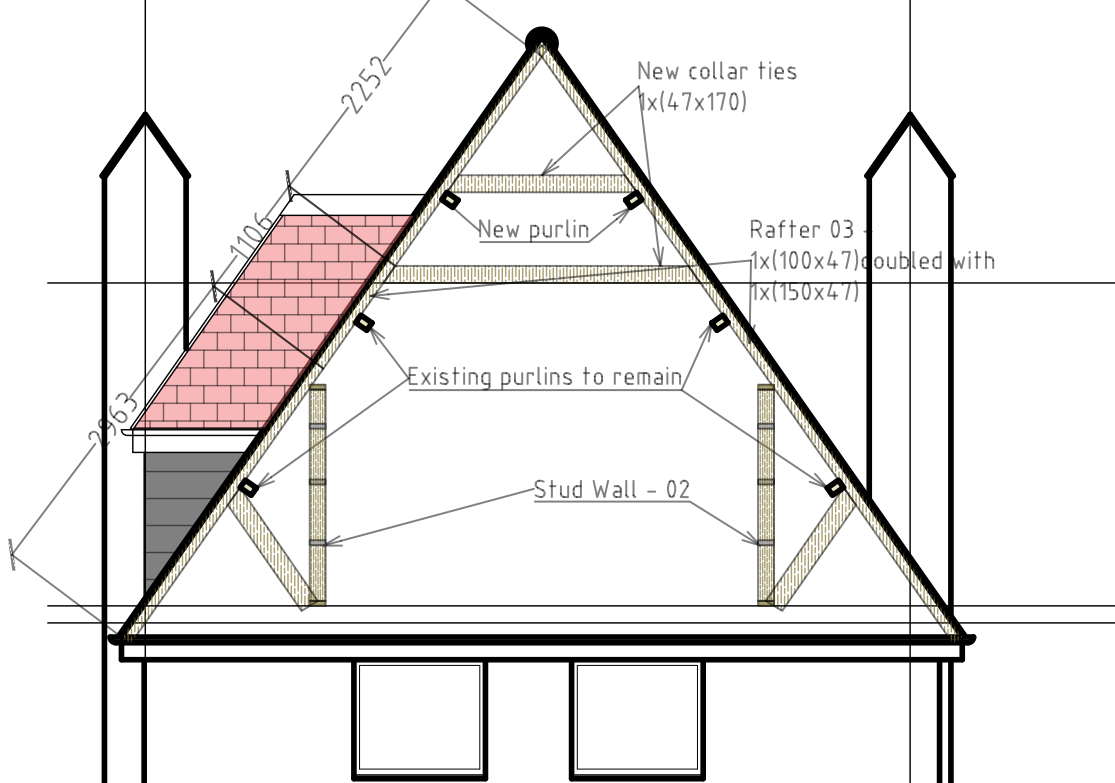 A structural design was developed to convert an existing loft space into a habitable floor. The original structure was not designed to support residential loading, with undersized joists and internal timber supports restricting usable space.