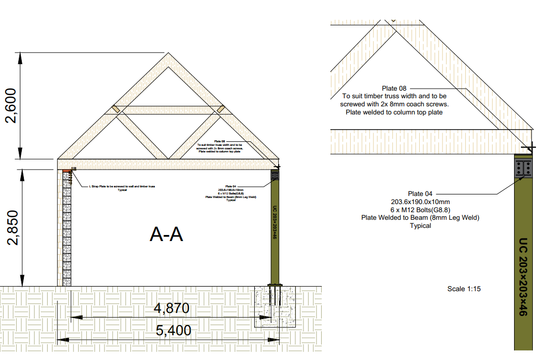 The final design provides a robust and compliant structural solution, enabling the safe transformation of the barn while preserving its original character.